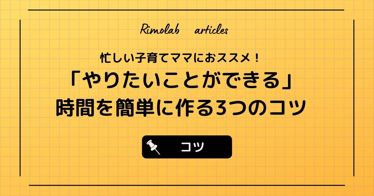 子育てや家事に追われがちなママでも時間をつくり、やりたいことができるコツを解説します!